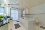 • freistehende Badewanne mit Wirlpoolfunktion, sehr gute Badausstattung, Echtglasabtrennung, Toilette