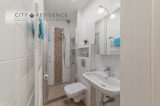 • hochwertige Fliesen und Böden, helle Fliesen, Handtuchheizkörper, Toilette