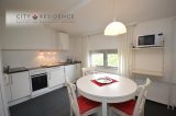 Esstisch mit Stühlen Herd mit Backofen, Mikrowelle Kühlschrank Kaffeemaschine, Wasserkocher, Toaster
